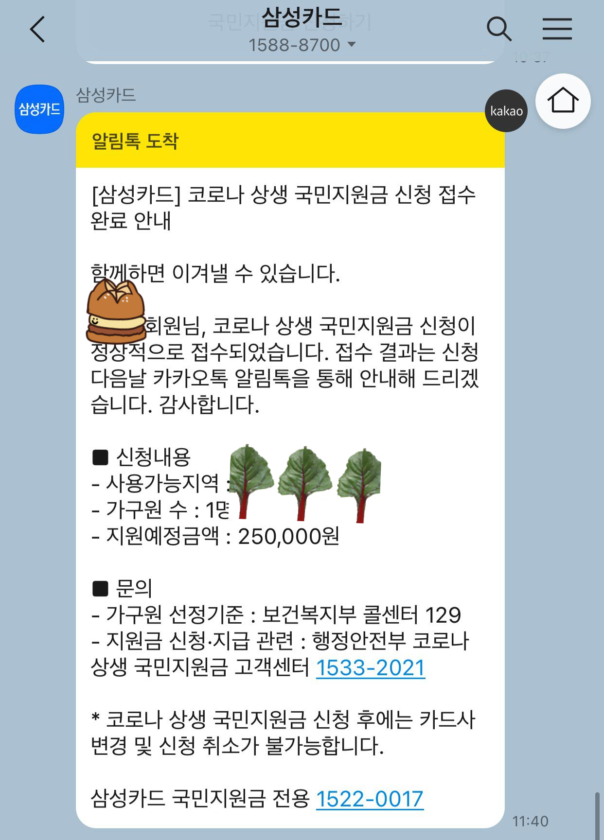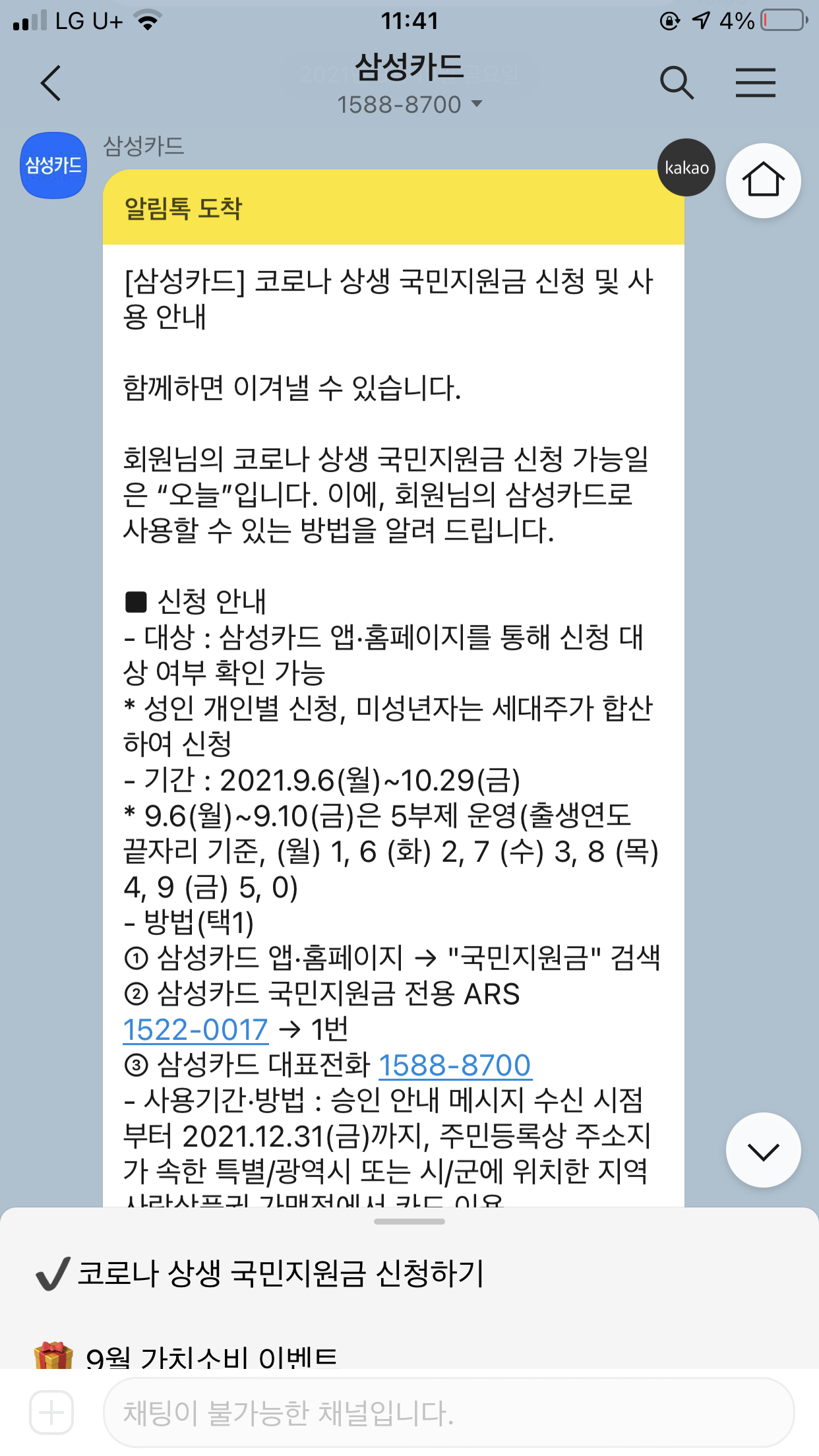 삼성카드 국민지원금 전용 ARS 번호는