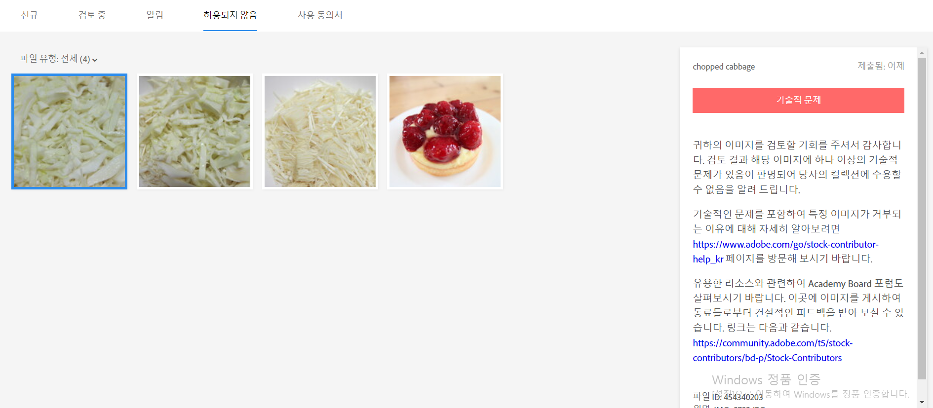 어도비스톡 허용되지 않음칸에 4장의 사진들