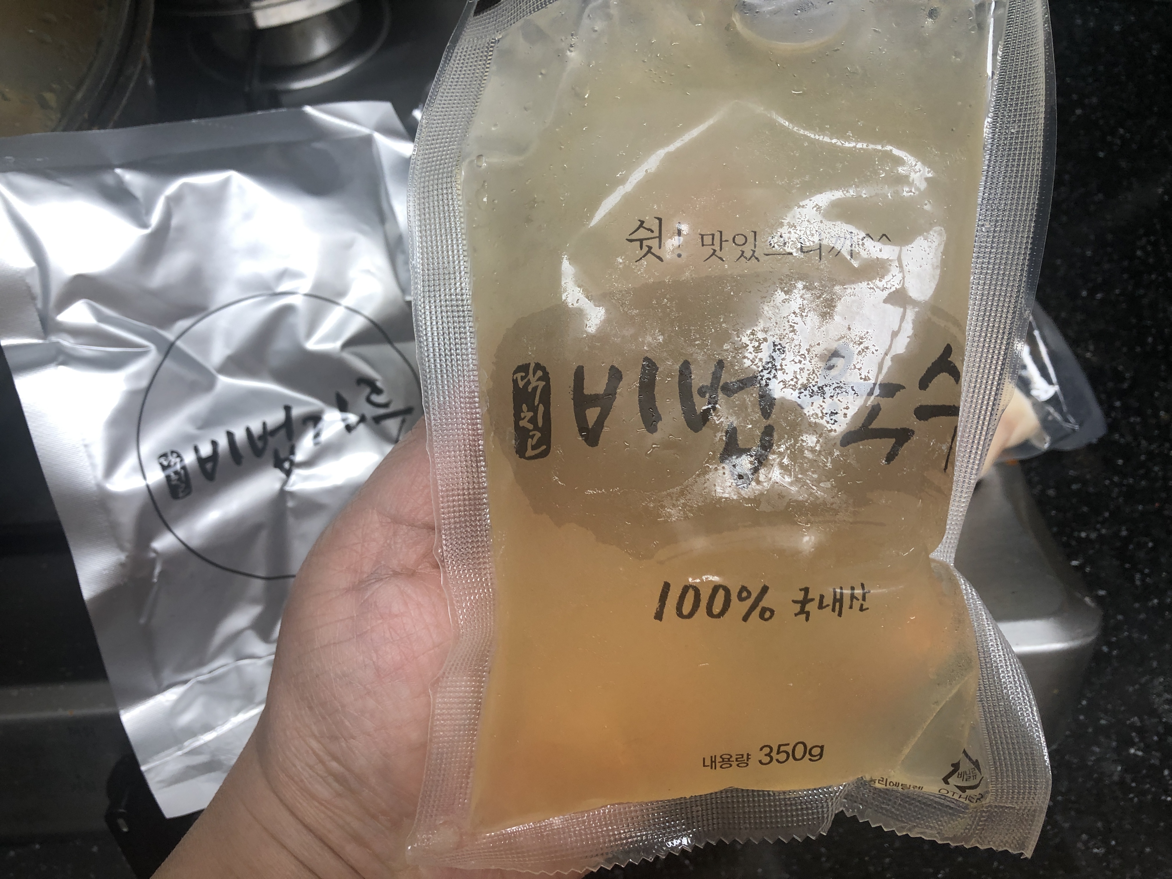 꽝꽝 얼려져서 와서 해동해서 끓여먹음~