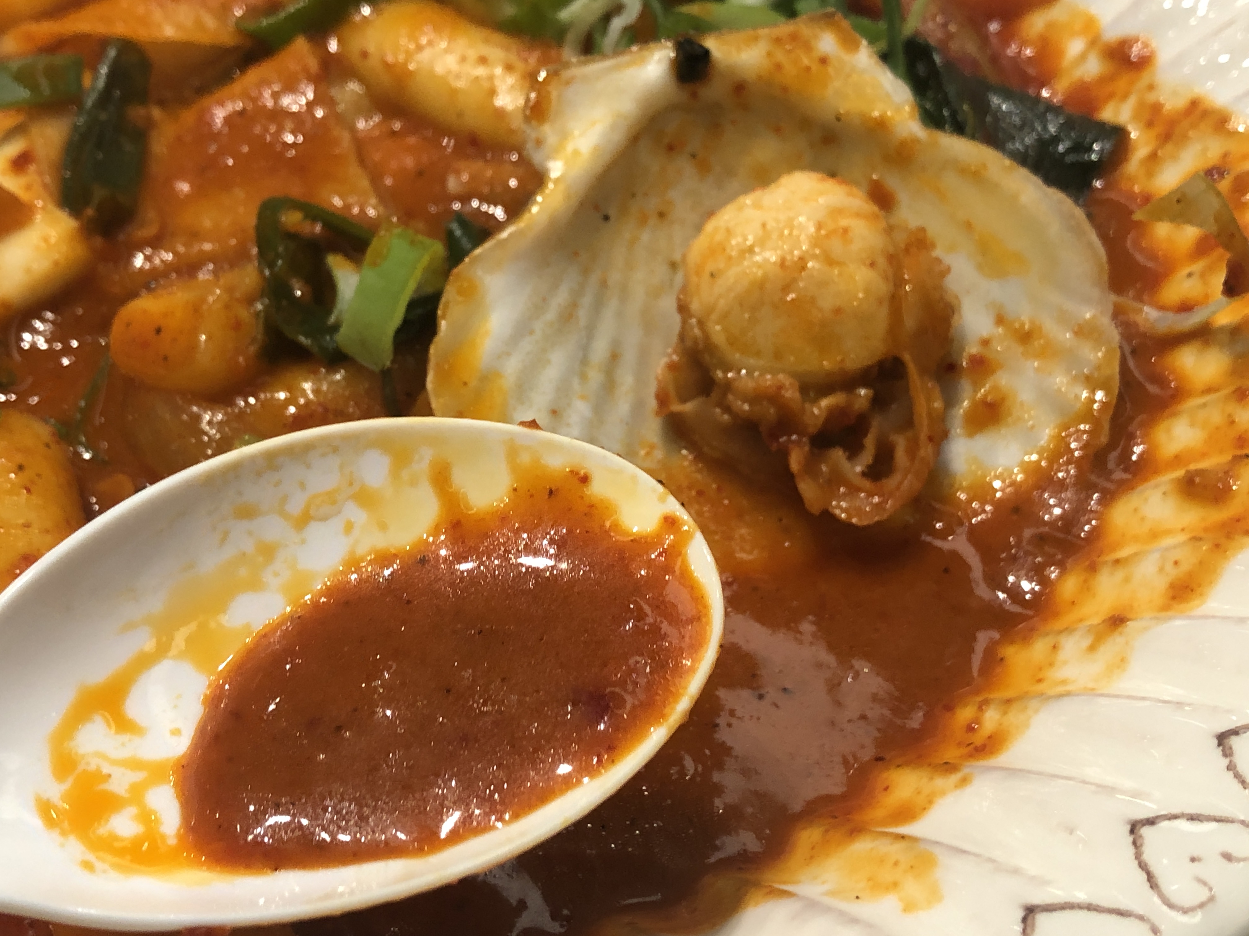동탄 롯데백화점 맛집 정원분식의 짬뽕떡볶이의 국물만 찍어봤습니다!