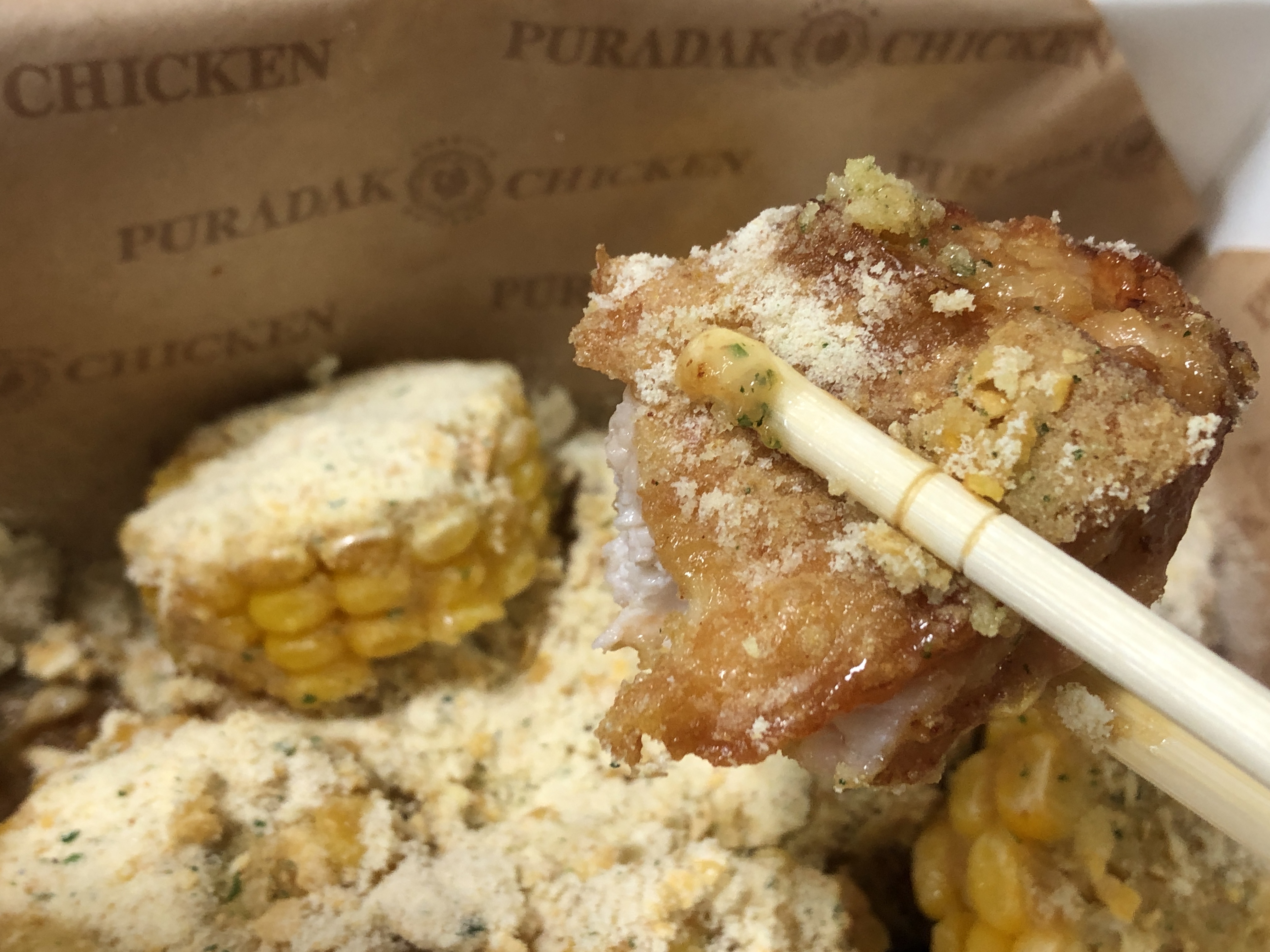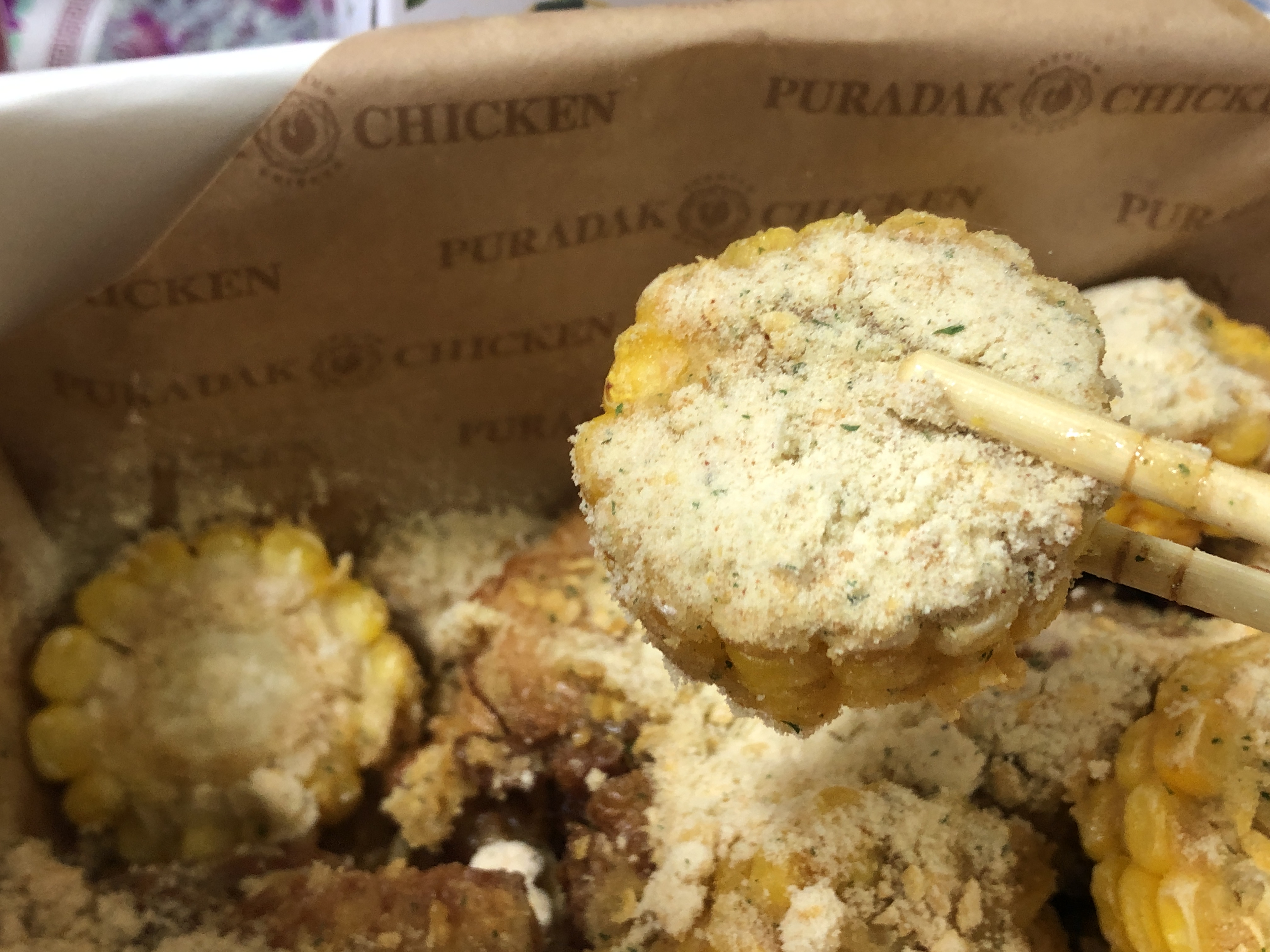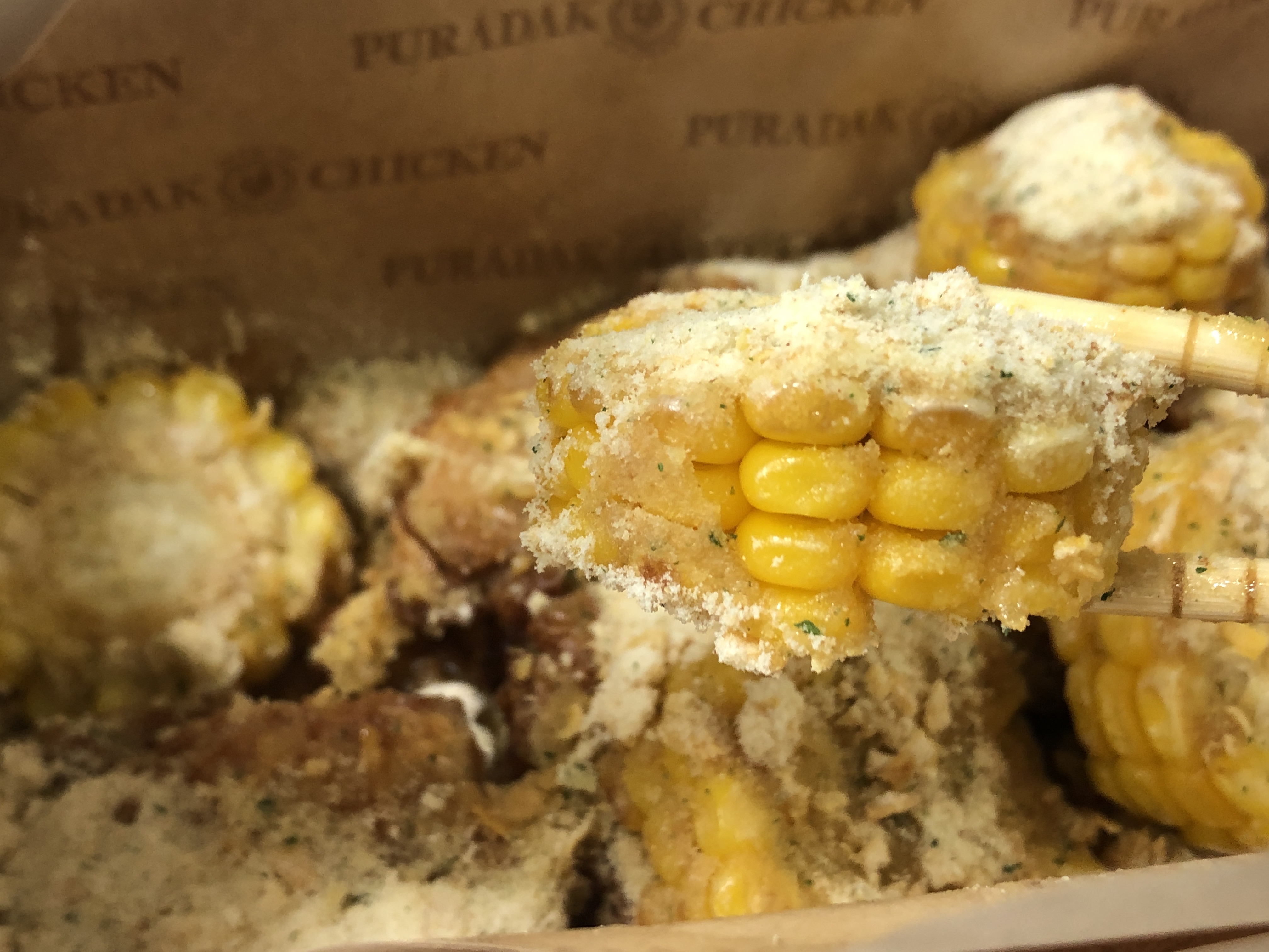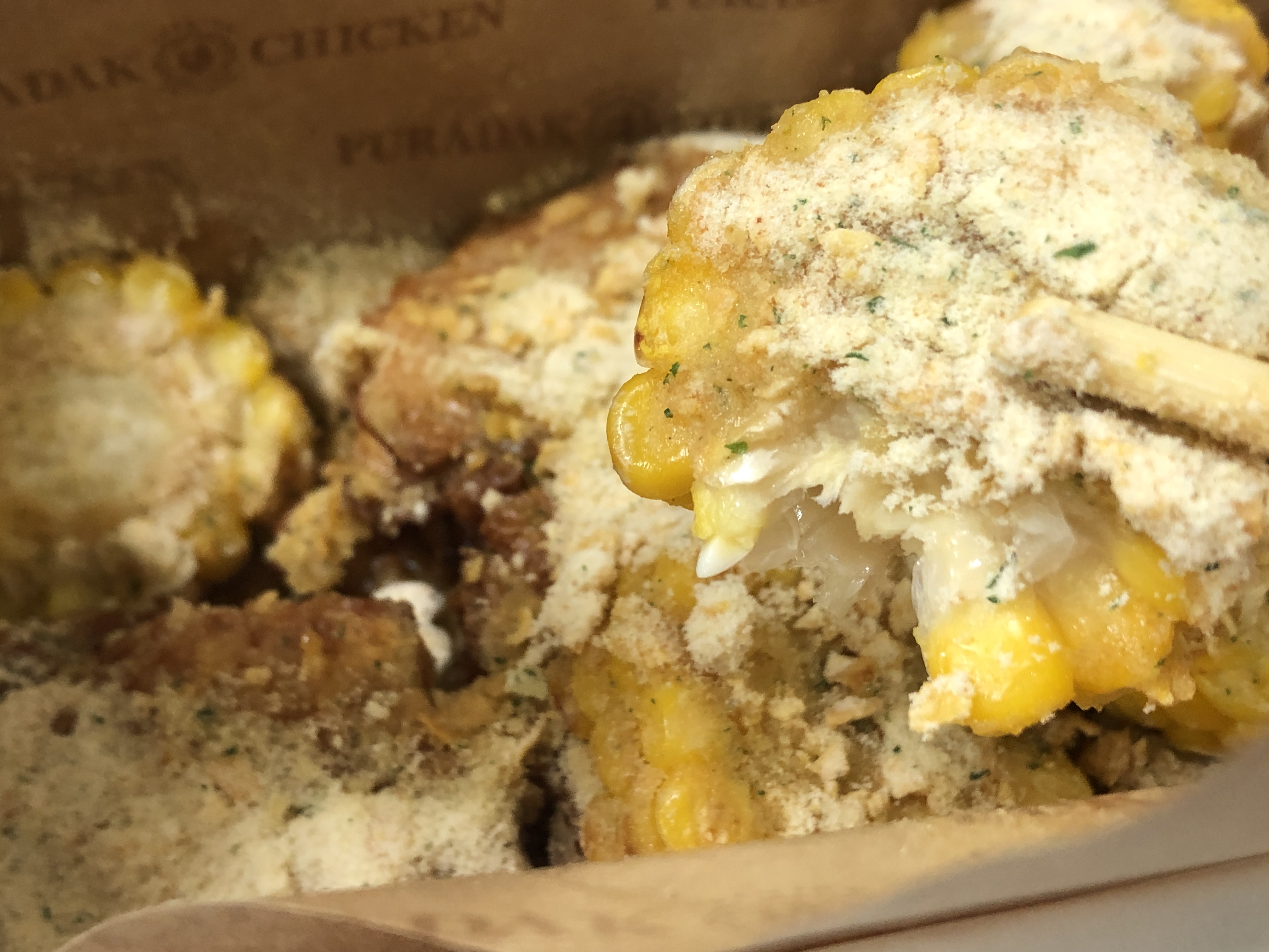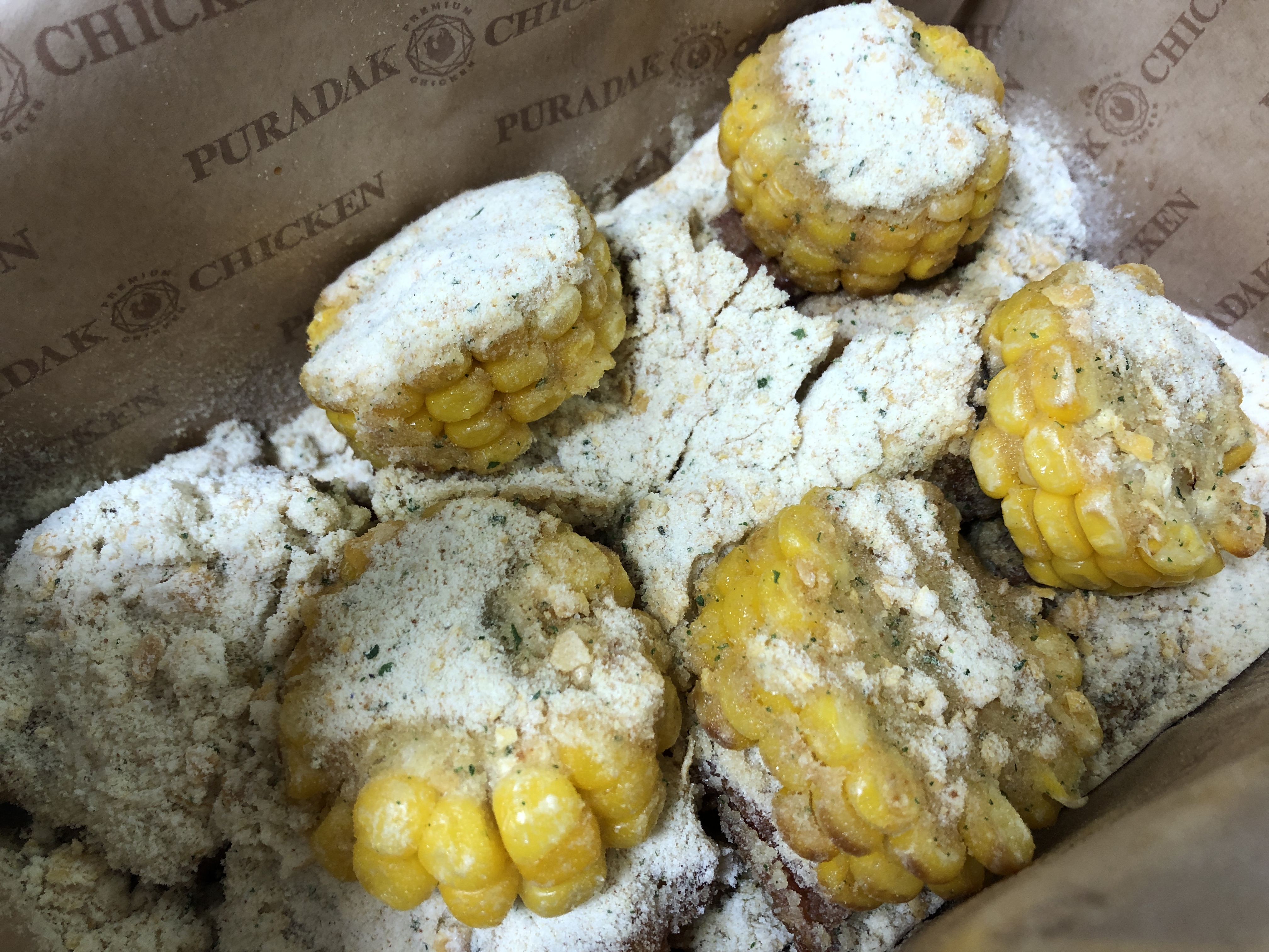 옥수수와 시즈닝 가루에 뒤덮혀서 치킨이 안보이네요 ㅋㅋㅋㅋ