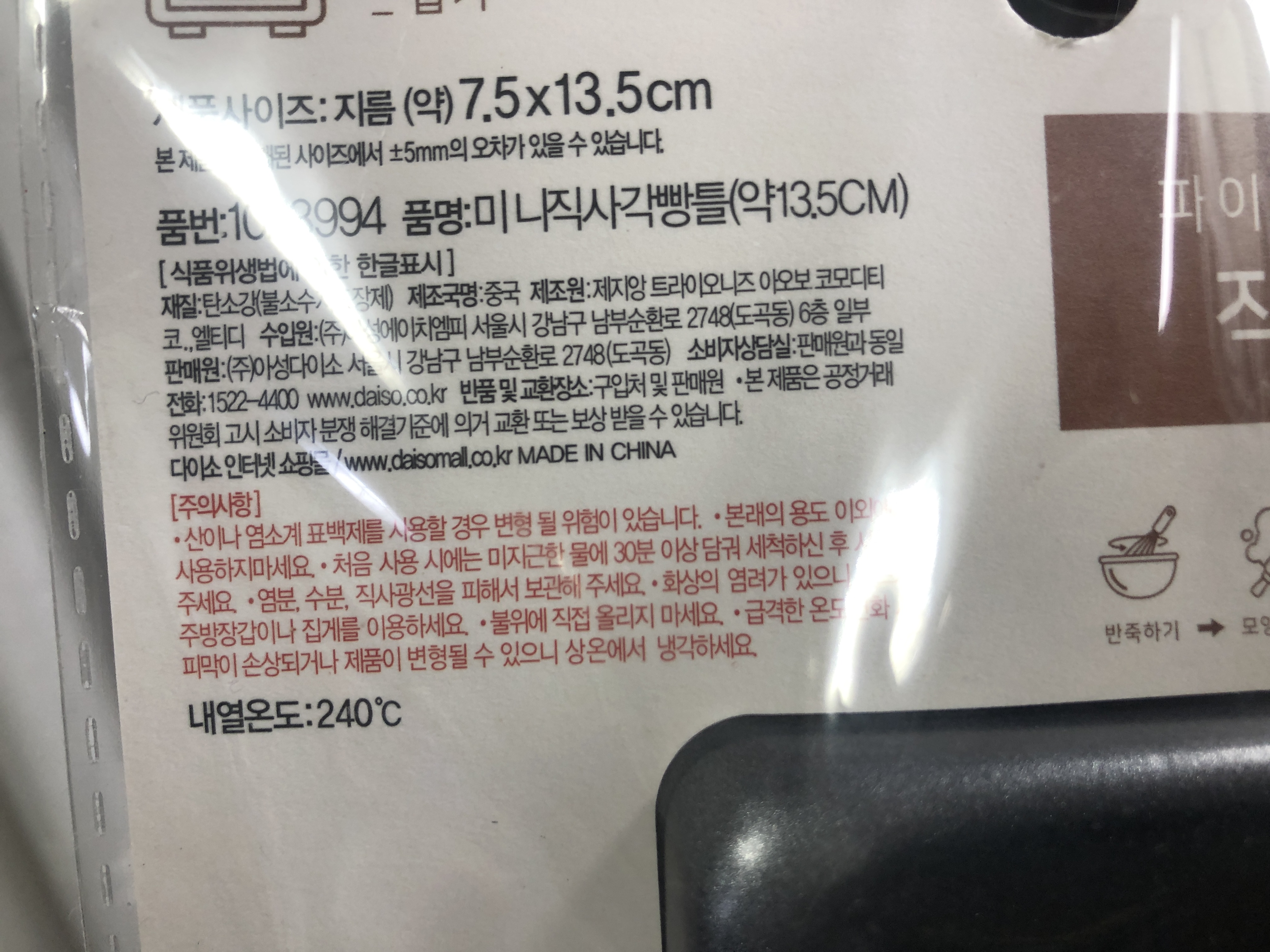 내열온도는 240도이고, 처음 사용하기 전에 세척을 잘 해주라고 써있다~