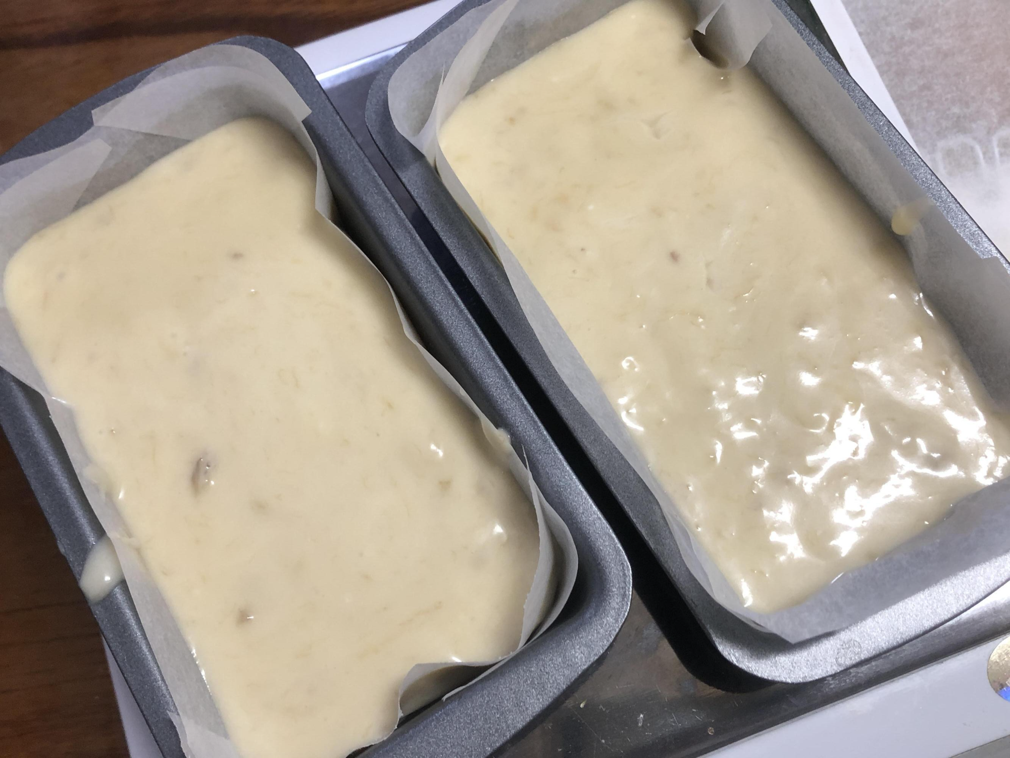 직사각빵틀 2개에 구울때 바나나가 110g정도 들어갔다!