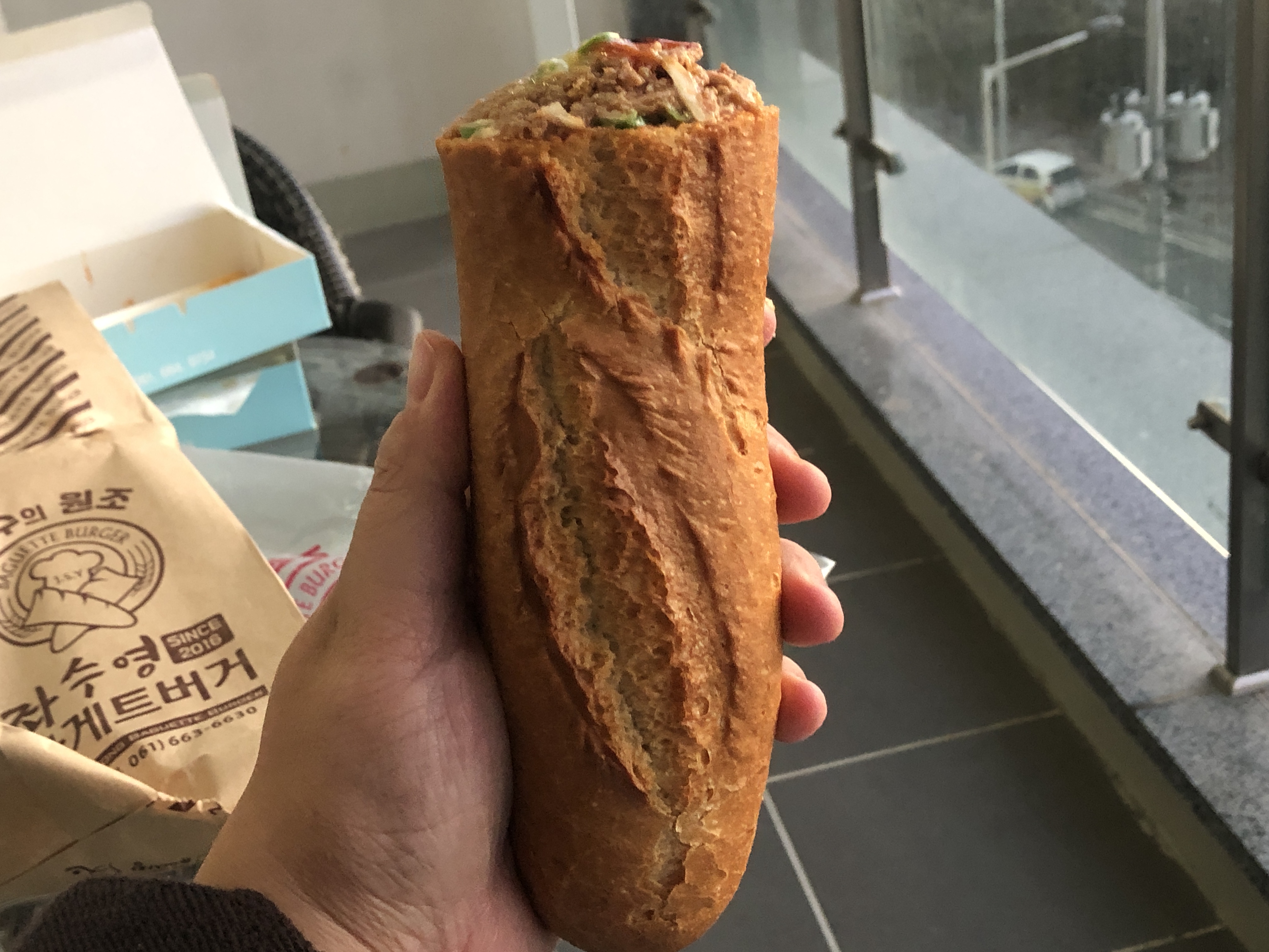 여수 좌수영바게트버거 크기 !!!! 생각보다 얇고 길다!! 와우!