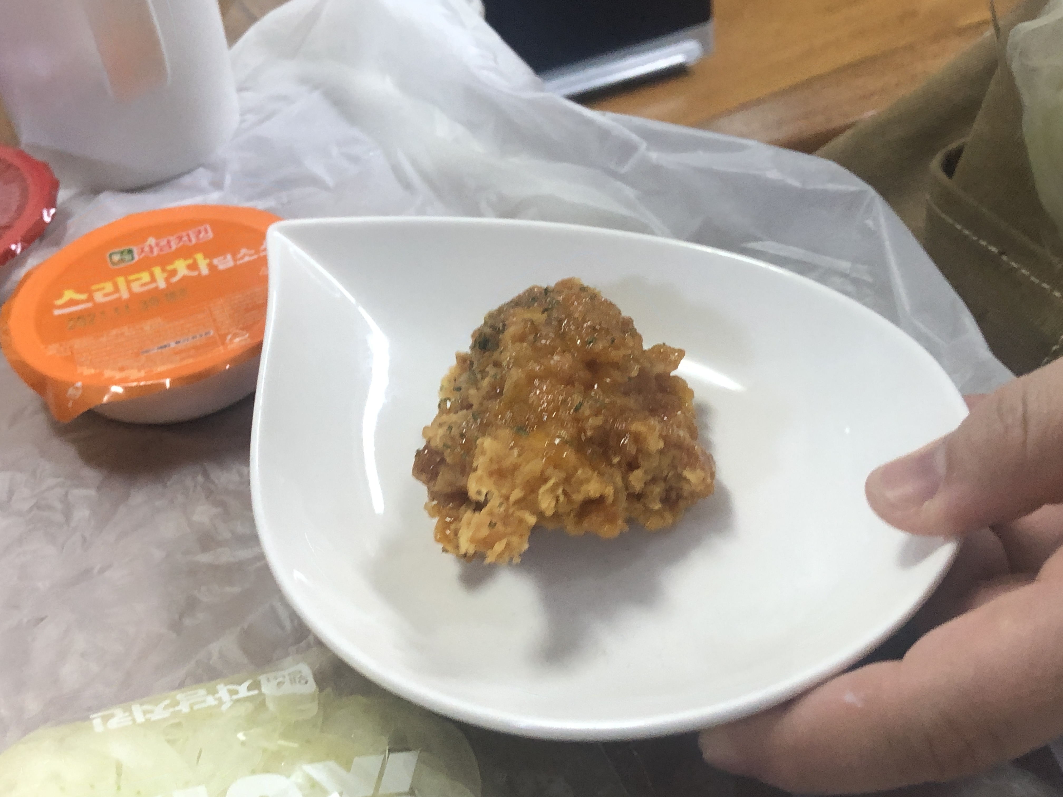 뭔가 평범해보이죠 ? 하지만~ 스리라차치킨은 그냥 이렇게 먹는 치킨이 아닙니다